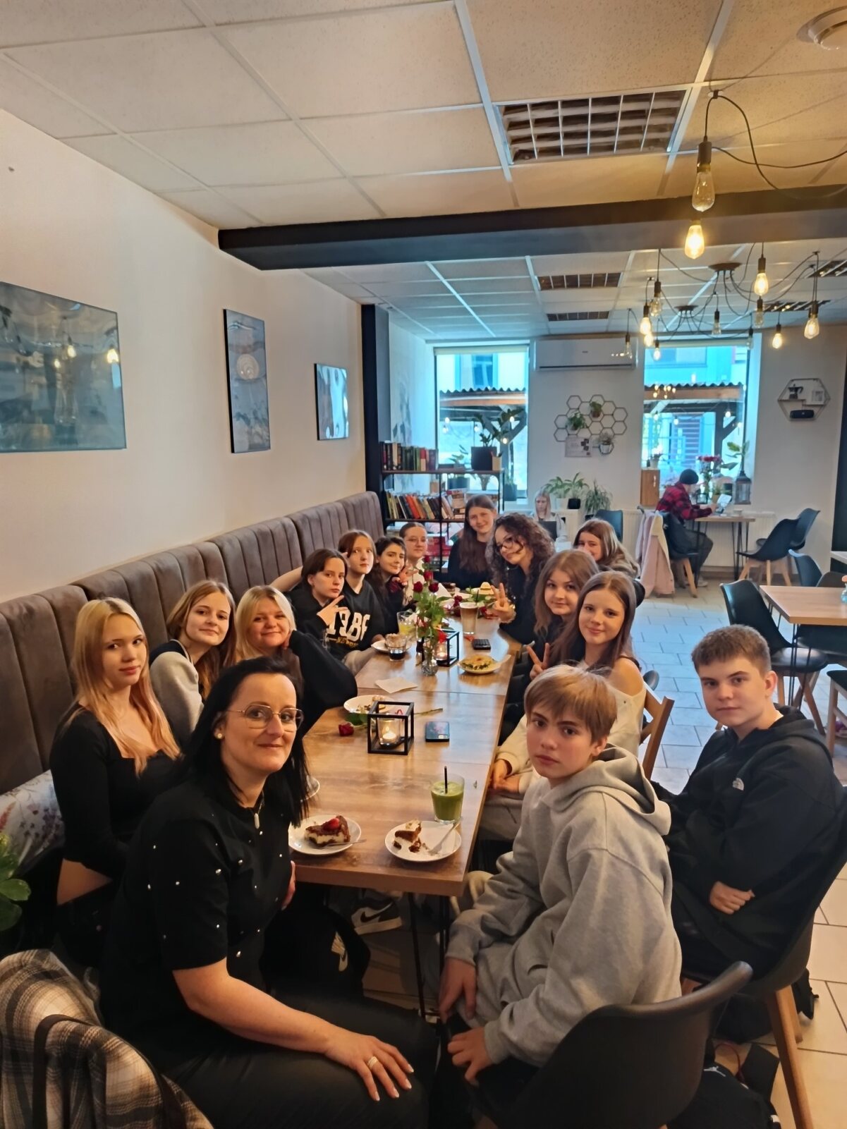 Z okazji Dnia Kobiet klasa 7c wraz z wychowawczynią wybrała się w piątek do restauracji na kawę i ciastko.