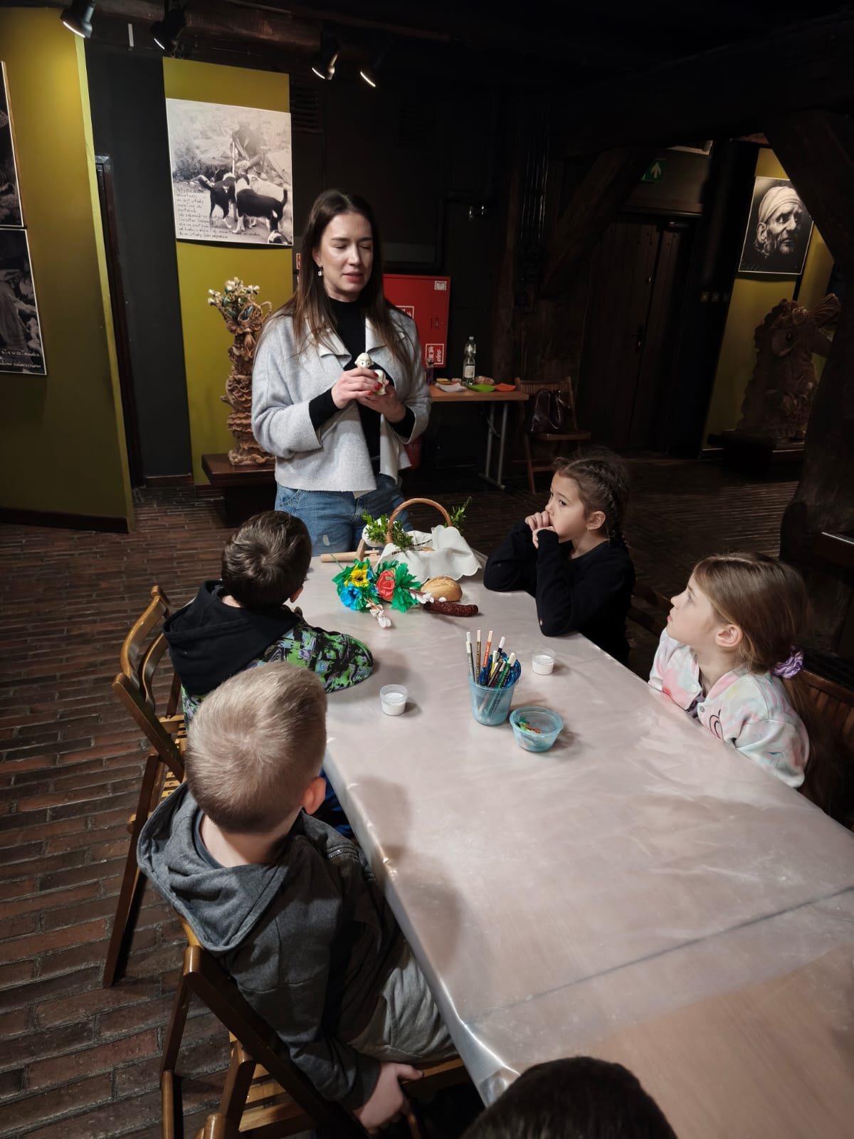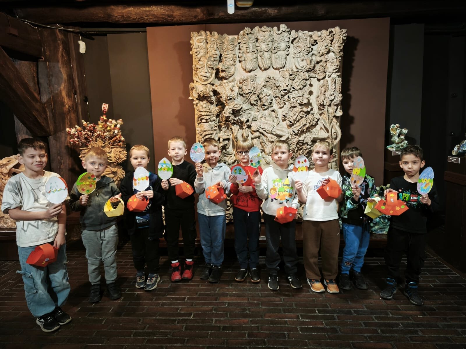 W dniu 12.03.2026 r. grupa 6-latków B z naszego przedszkola wzięła udział w wyjściu do Muzeum Ziemi Kujawskiej i Dobrzyńskiej na warsztaty wielkanocne. Podczas zajęć dzieci miały okazję poznać tradycje związane ze Świętami Wielkanocnymi. Prowadząca opowiedziała o zwyczaju święcenia pokarmów w wielkanocnym koszyczku oraz o tradycji śmigusa-dyngusa. Dzieci z zainteresowaniem słuchały opowieści i chętnie odpowiadały na pytania.