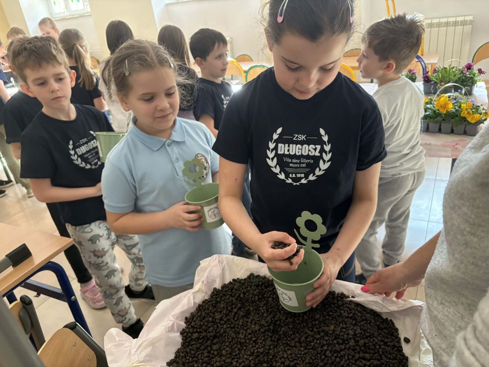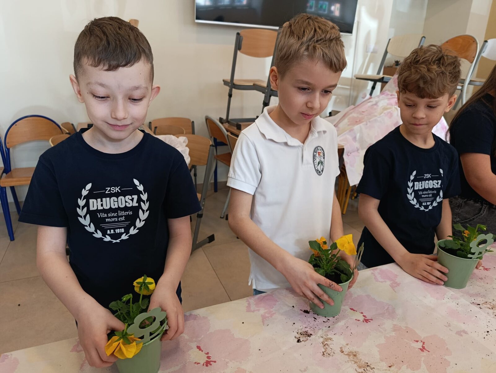 Dnia 17 marca 2026 r. uczniowie klasy 1a i 2a wzięli udział w warsztatach florystycznych „Kwitnący parapet” prowadzonych przez Panie z Forest Studio. Celem zajęć florystycznych było pobudzanie wyobraźni i kreatywności, nauka rozpoznawania gatunków roślin i dbałości o środowisko oraz radość z samodzielnego sadzenia roślin doniczkowych.