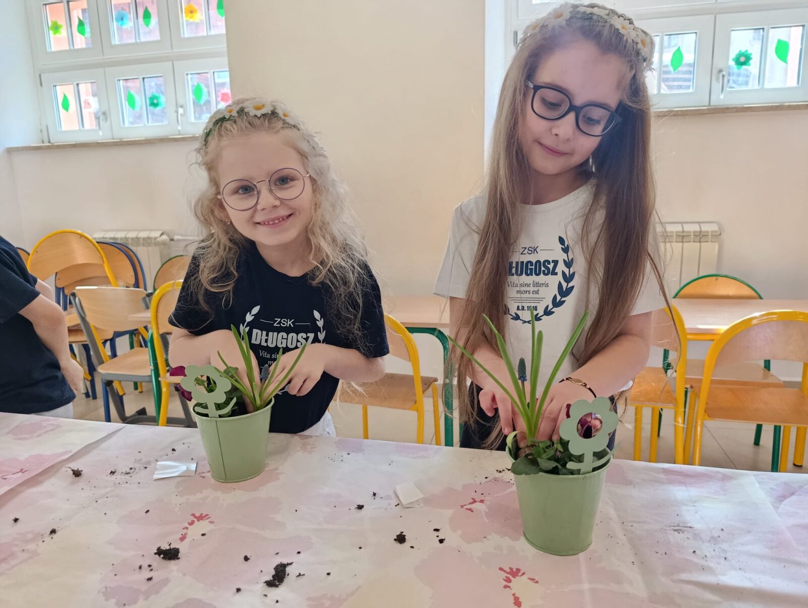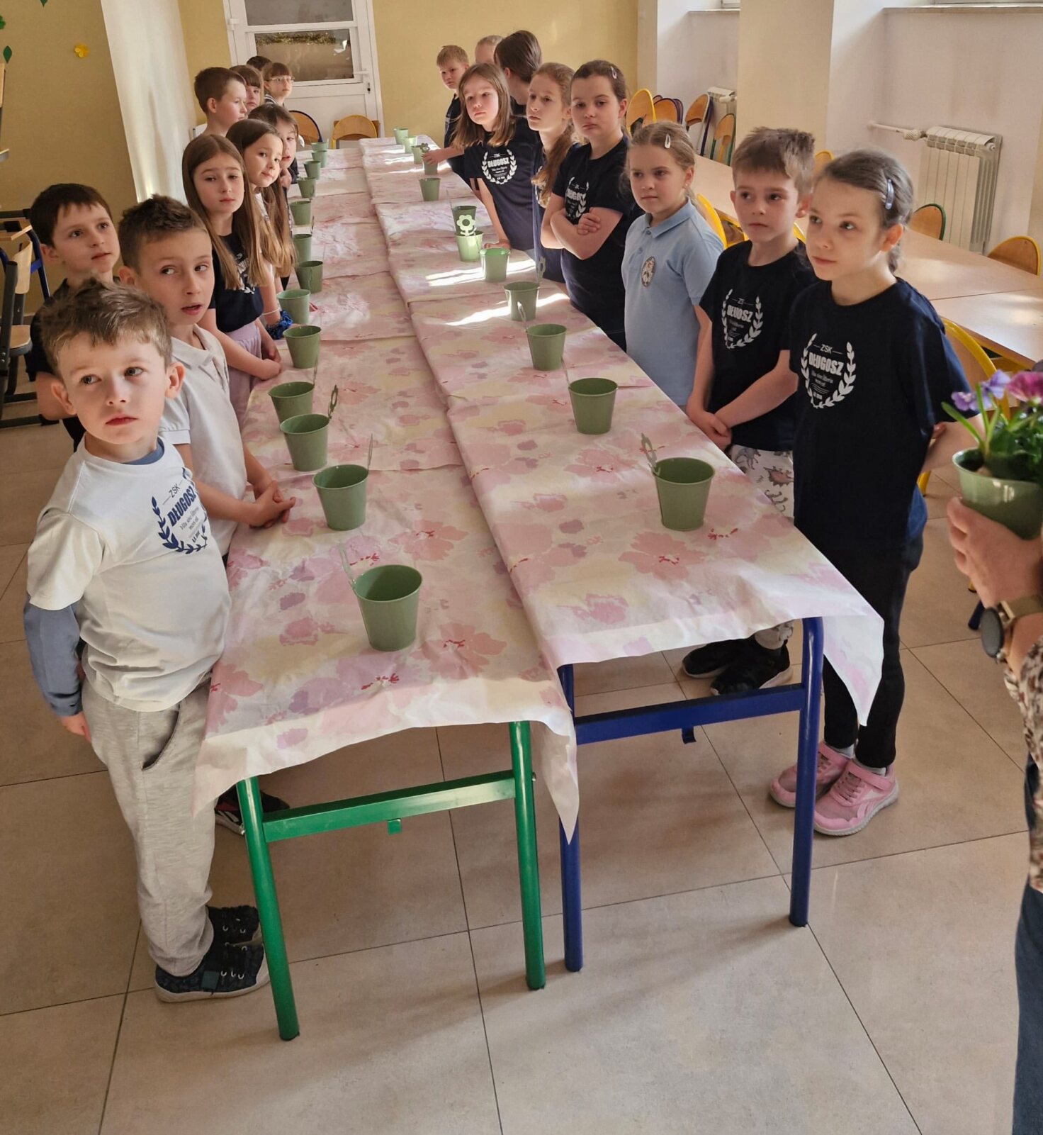 W pierwszej części warsztatów omówione zostały materiały (kwiaty sezonowe, budowa roślin doniczkowych), zasady doboru kolorystyki oraz technika sadzenia roślin. Następnie Mali Długoszacy samodzielne tworzyli kompozycje pod okiem instruktorki – florystki. Na koniec warsztatów nastąpiła prezentacja gotowych prac.
