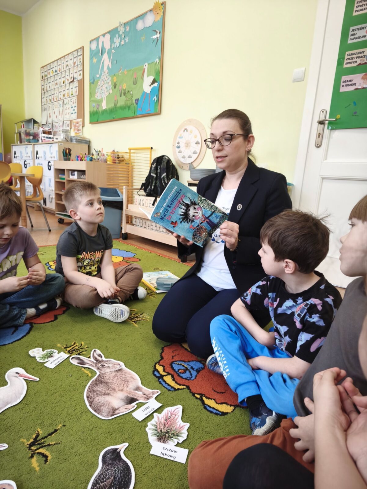 Na zakończenie dzieci wysłuchały fragmentu książki Marii Kownackiej „Za żywopłotem” opowiadającej o budzącej się do życia wiosennej przyrodzie.