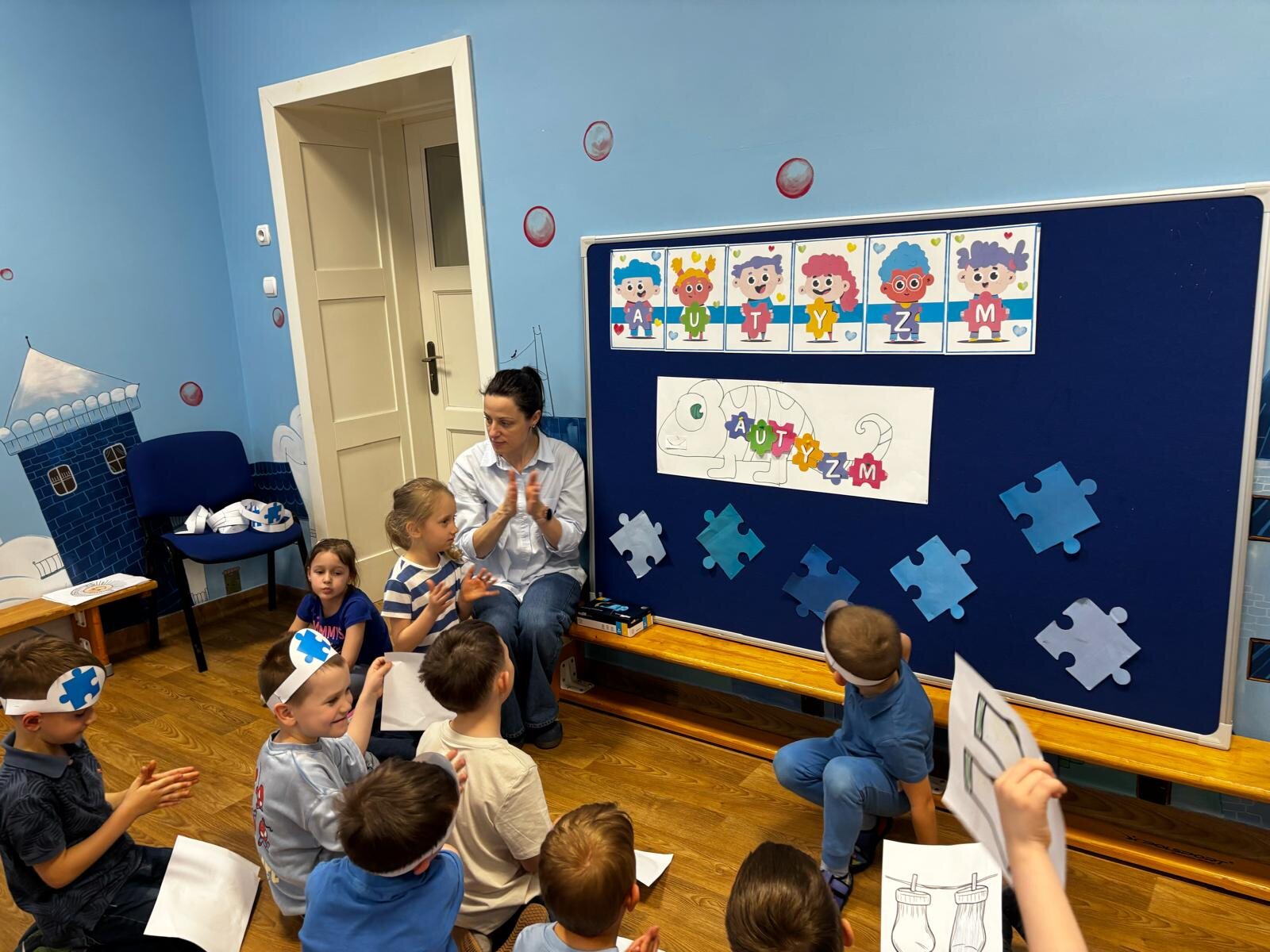 W naszym przedszkolu odbyło się wyjątkowe wydarzenie przygotowane przez pedagoga specjalnego oraz logopedę. W tym dniu nasze sale wypełniły się kolorem niebieskim, ponieważ dzieci i nauczyciele przywdziali stroje w tym barwach na znak solidarności i wsparcia dla osób w spektrum autyzmu.