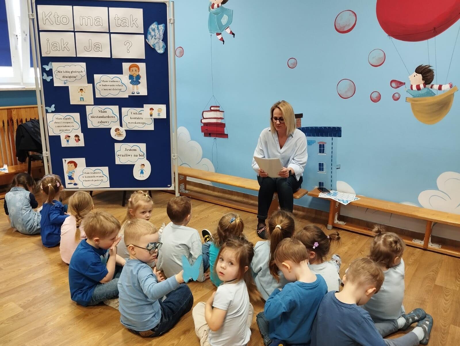 Spotkanie rozpoczęliśmy od części edukacyjnej – dzieci obejrzały film Autyzm oraz wysłuchały bajki o Antku, chłopcu w spektrum autyzmu. Dzięki tej historii przedszkolaki mogły lepiej zrozumieć, że każdy z nas ma swoje mocne strony i wyjątkowe sposoby odbierania świata. Ważnym punktem była pogadanka pod hasłem „Kto ma tak jak ja?”, przeprowadzona w ramach realizacji ogólnopolskiego projektu edukacyjnego organizowanego przez portal Pedagogika Specjalna.
