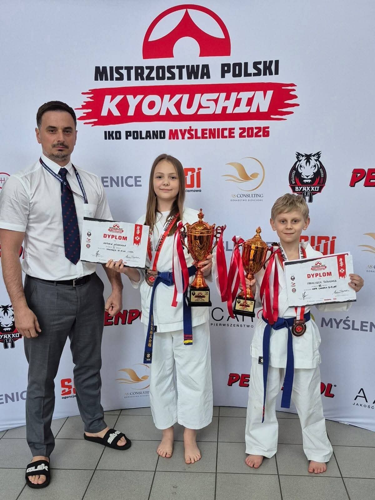 Z dumą informujemy o sukcesie ucznia naszej szkoły, Franciszka Rogiewicza z klasy 2b, który wziął udział w Mistrzostwach Polski Kyokushin IKO Poland, rozegranych 11 kwietnia 2026 roku w Myślenicach.